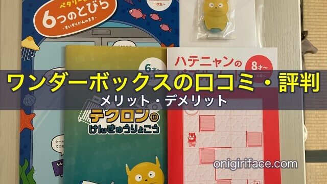 ワンダーボックス ワンダーボックスの口コミ・評判から見たメリット5つとデメリット5つ 通信教育「ワンダーボックス」の口コミ・評判から見たメリット(良い点)5つとデメリット(気になる点)5つを紹介。STEAM教育・理系のIQや学力向上に効果。頭で考える問題が多く思考力や創造力の向上に繋がる。知的発達の境界域・グレーゾーンにもおすすめ。問題数や種類が多く飽きずに続けられるなど。料金や解約時のデメリットも。 2024.02.16 ワンダーボックス幼児通信教育教材
