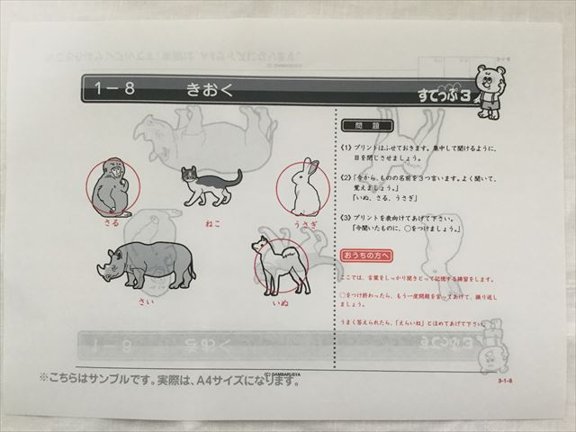 すてっぷ3の記憶問題の一例。子供が学習するサンプルです。