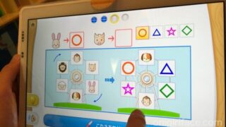 その他、折り紙やハサミで切るような問題もあり、子供が飽きない仕組みになっています。